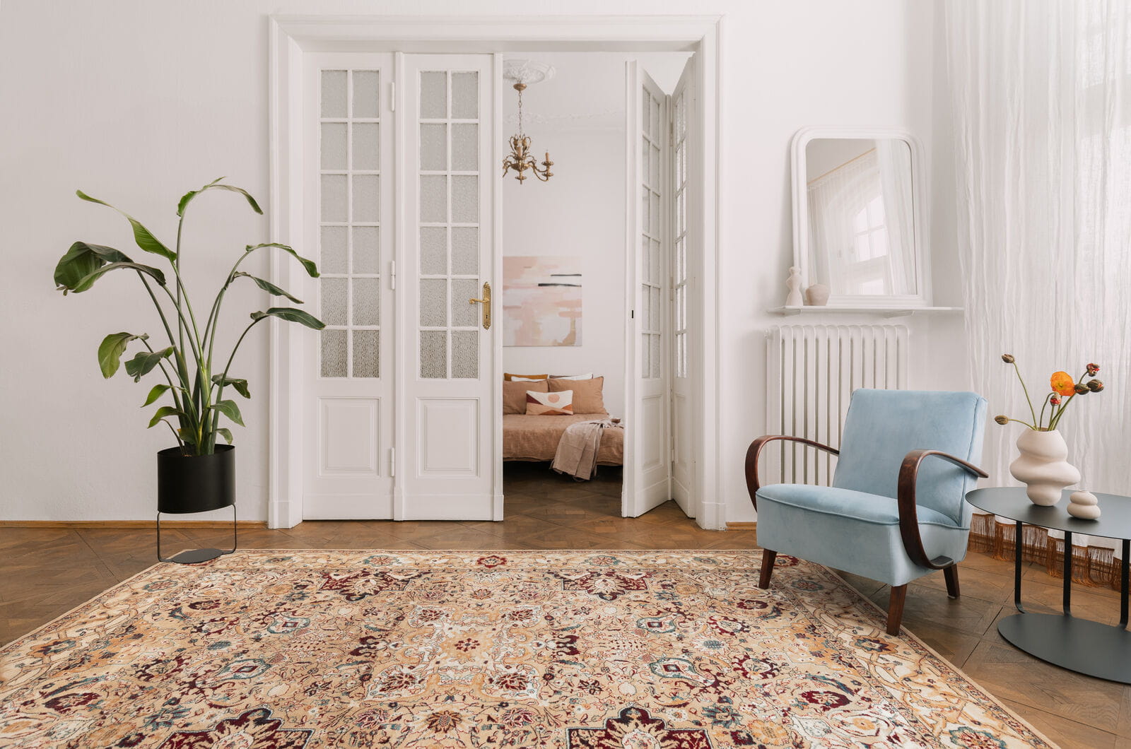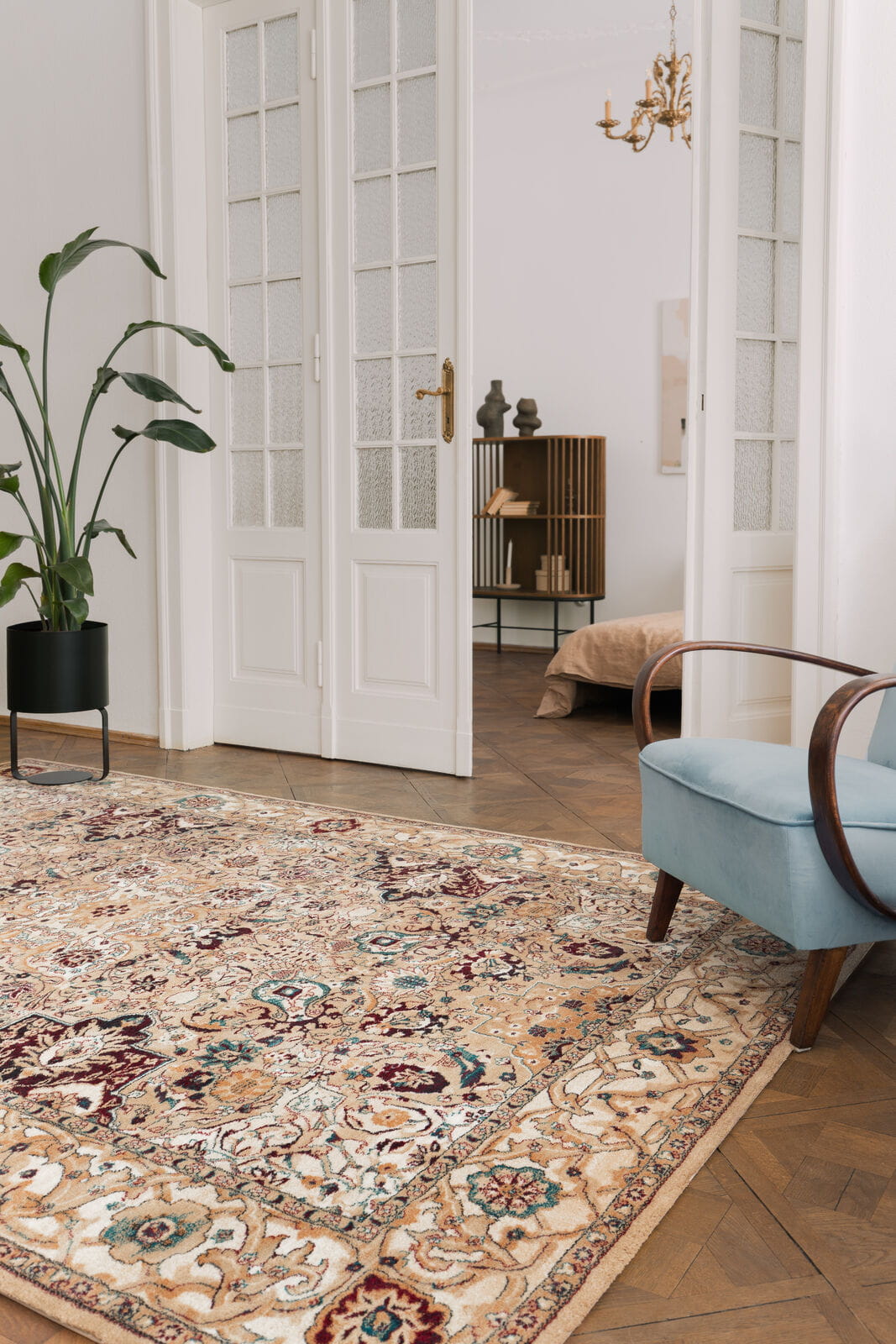 AIDA Jasny Beż zachwyca orientalnym wzornictwem inspirowanym perską ornamentyką. Na jego powierzchni przeplatają się piękne motywy roślinne, zwierzęce i subtelne ornamenty, tworząc niezwykle efektowną kompozycję. Wykonany z najwyższej jakości 100% nowozelandzkiej wełny, dywan ten zapewnia niezwykłą trwałość i miękkość, co sprawia, że staje się nie tylko elementem dekoracyjnym, ale również funkcjonalnym.