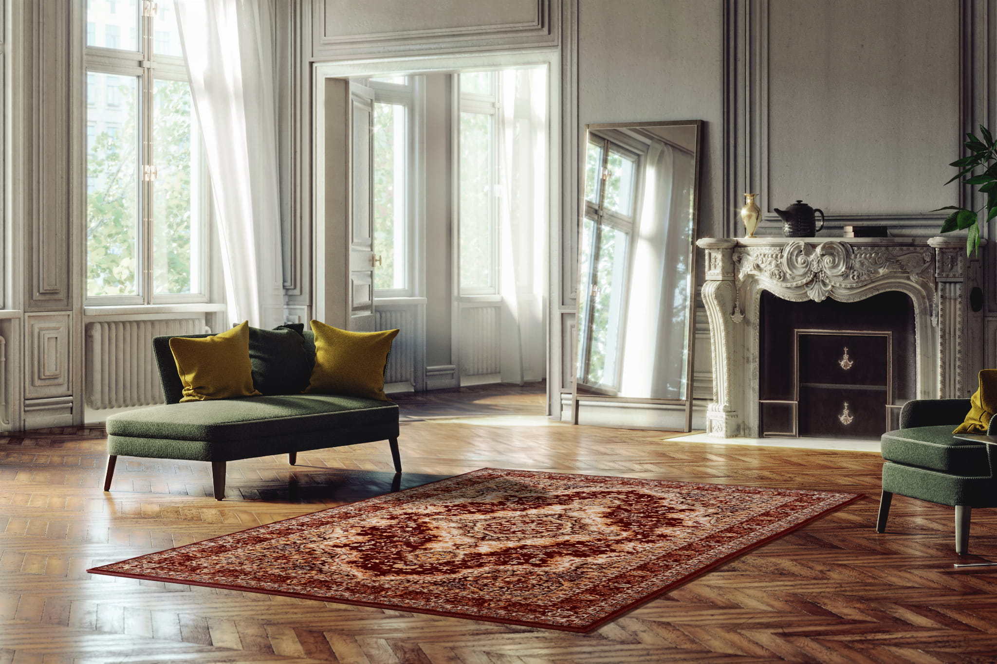 Jego klasyczny wzór, inspirowany perskimi ornamentami, nadaje wnętrzu wyjątkowego uroku i charakteru. Kolor rubinowy dodaje mu nuty elegancji i prestiżu, idealnie komponując się zarówno z tradycyjnymi, jak i nowoczesnymi aranżacjami wnętrz.