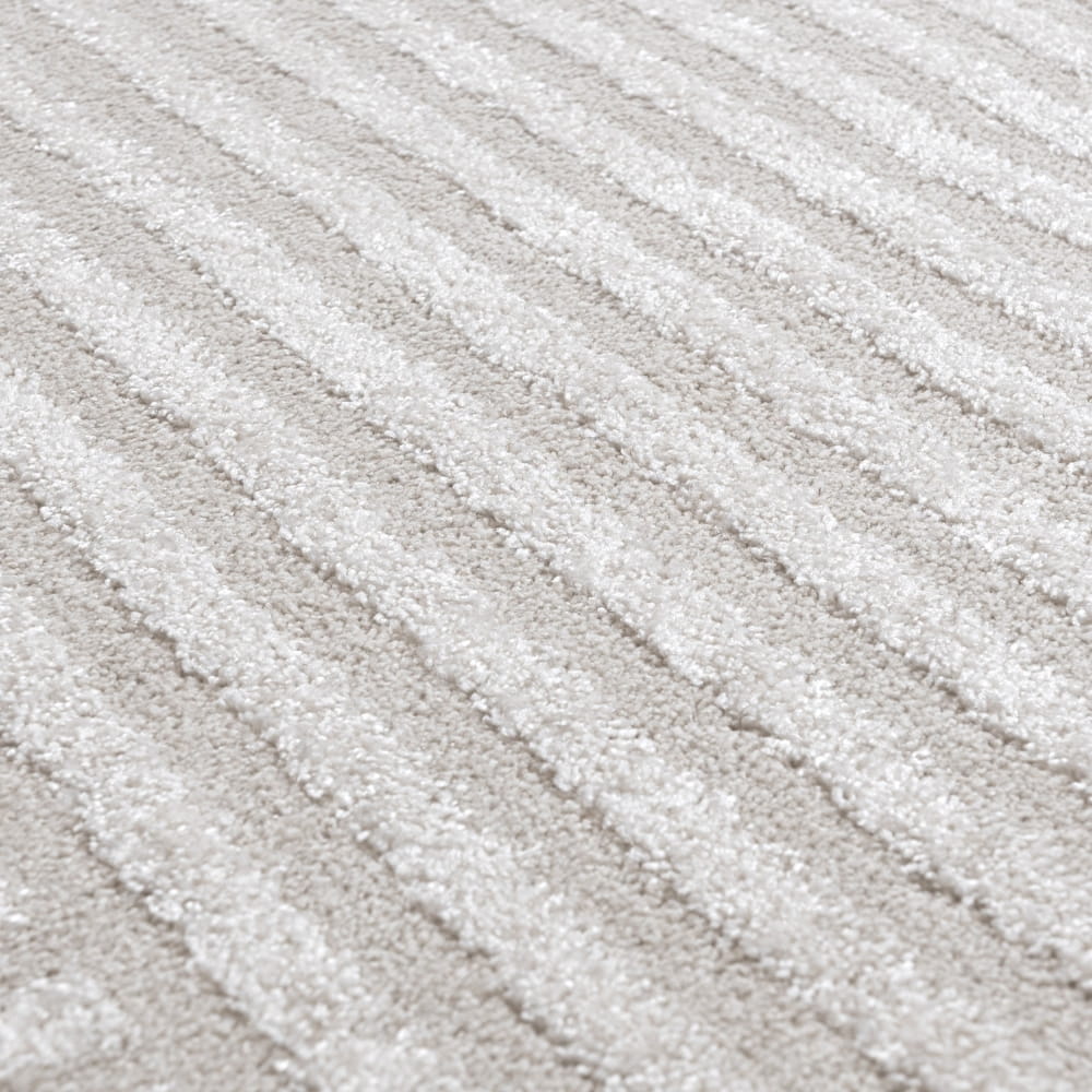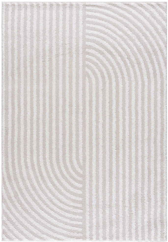 Dywan Art Rugs VIBRANT HIGH NP08B Cream to esencja elegancji i nowoczesnego stylu, który wprowadzi do Twojego wnętrza harmonię i spokojną atmosferę. Ten wyjątkowy dywan w odcieniach beżowych charakteryzuje się geometrycznym, pasiastym wzorem 3D w stylu Zen, który nadaje pomieszczeniom niepowtarzalny charakter.