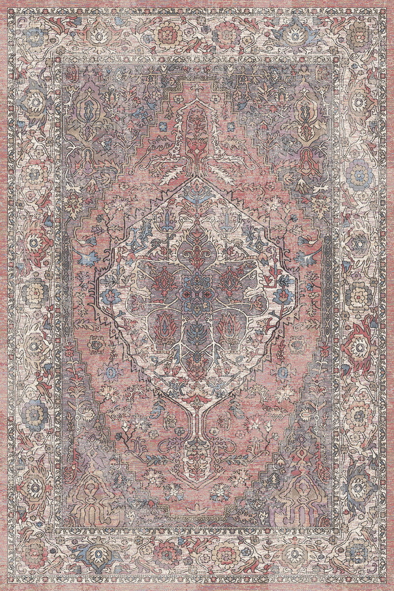 Delikatne tony szarości i przygaszonego różu przeplatają się z subtelnymi akcentami błękitu i beżu, tworząc harmonijną i romantyczną kompozycję. Dzięki temu dywan zachwyca swoją lekkością i elegancją, a jednocześnie wprowadza do wnętrza atmosferę przytulności i spokoju. To idealne rozwiązanie zarówno do jasnych, klasycznych aranżacji, jak i do nowoczesnych przestrzeni, które potrzebują dekoracyjnego, ale nie przytłaczającego akcentu.