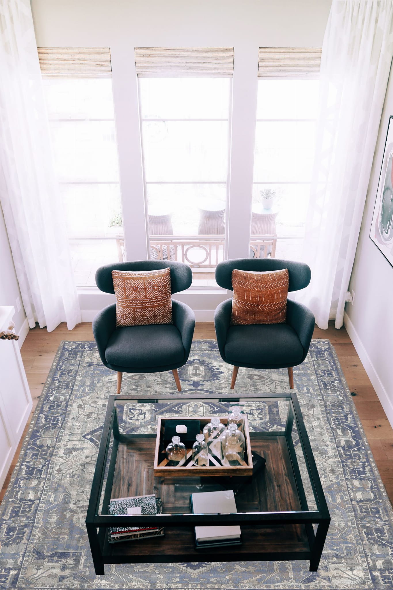 Centralnym punktem tego dywanu jest jego złożony wzór, który oscyluje pomiędzy subtelnością etnicznych inspiracji a nowoczesnością. Mieszanka odcieni niebieskiego i szarego tworzy spójną i harmonijną całość, która może stać się wyrazistym punktem centralnym salonu, sypialni czy jadalni, nadając pomieszczeniu unikatowego charakteru i głębi.