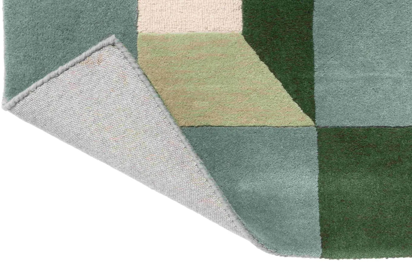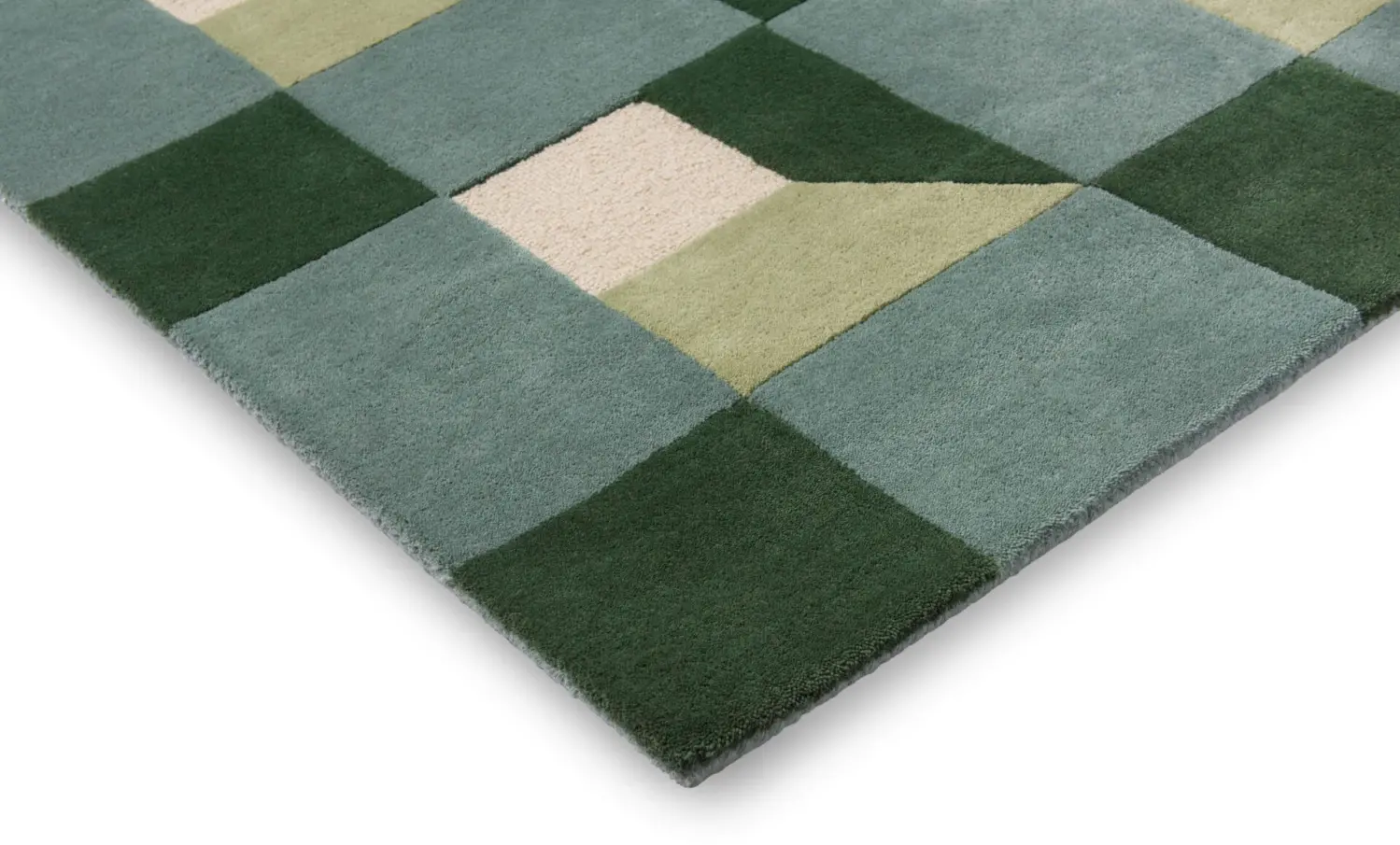 Wyrazisty wzór składający się z geometrycznych bloków, w harmonijnych odcieniach zieleni paproci, przywodzi na myśl spokojne i naturalne krajobrazy. Kolorystyka inspirowana naturą dodaje wnętrzu świeżości, jednocześnie wprowadzając atmosferę relaksu i spokoju. Miękkie i wysokie runo o grubości 17 mm sprawia, że każdy krok po dywanie to czysta przyjemność, a jego ciepła tekstura doskonale izoluje od chłodnej podłogi.