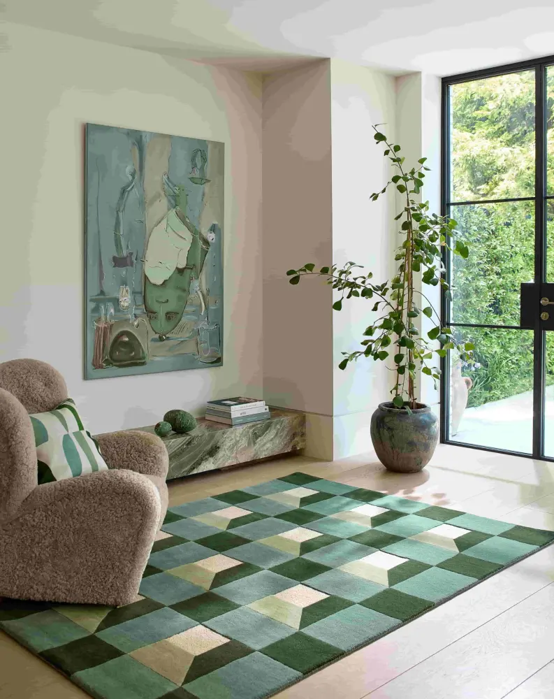 Dzięki unikalnemu wzornictwu i mistrzowskiemu wykonaniu, dywan Harlequin BLOCKS Fern 141907 doskonale wpisuje się w różnorodne style aranżacyjne – od nowoczesnych przestrzeni po klasyczne wnętrza. Jego geometryczne motywy i naturalna paleta barw nadają pomieszczeniom wyrazistości, a jednocześnie pozostają subtelne i eleganckie.