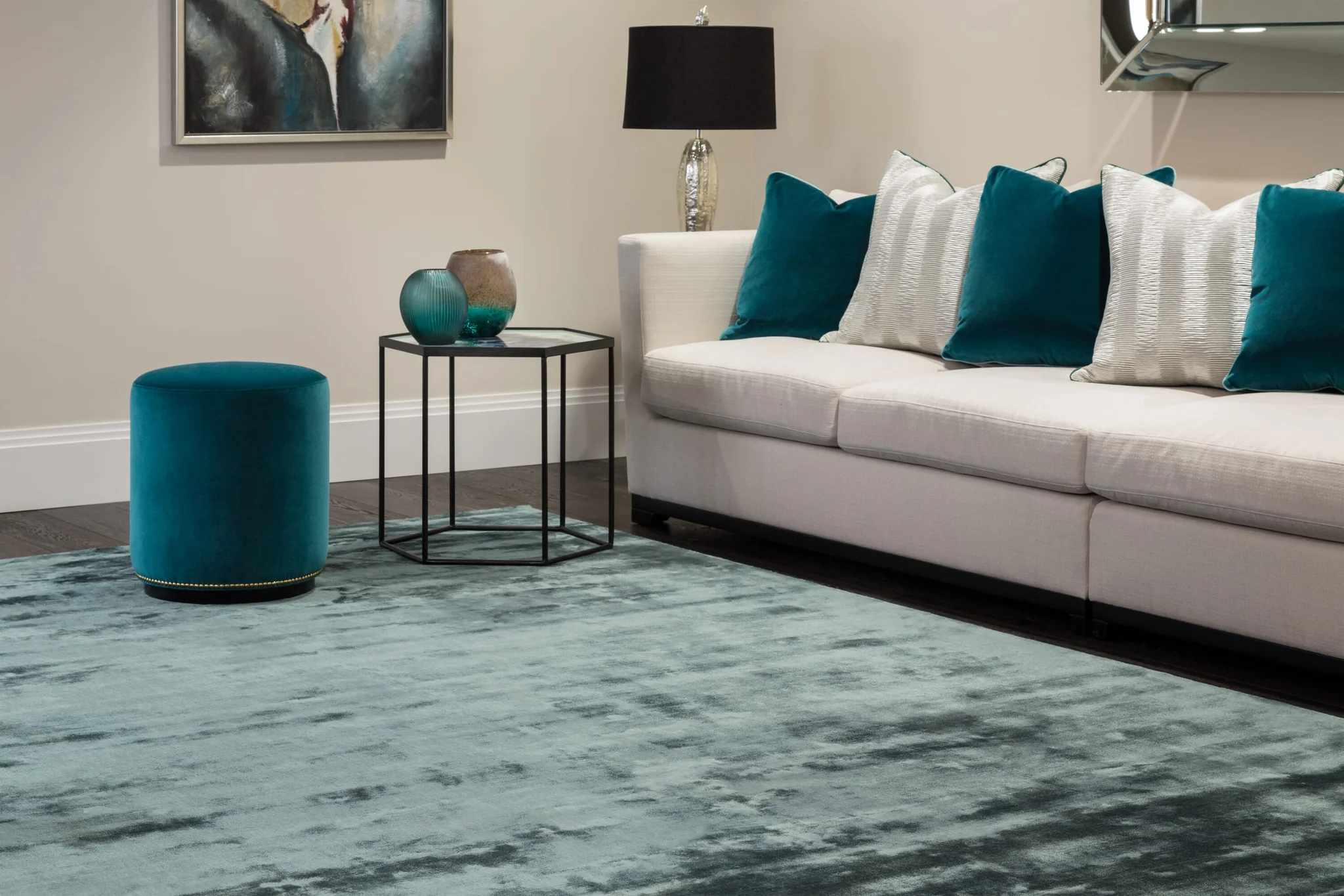 Dywan Katherine Carnaby CHROME Petrol to wyrafinowane połączenie luksusu i subtelnego designu, stworzone z myślą o wnętrzach, które aspirują do elegancji i wyjątkowej atmosfery. Wykonany w 100% z wiskozy i ręcznie tkany, ten dywan wyróżnia się na tle innych swoim designerskim wyglądem i bogatą teksturą, przynosząc do każdego pomieszczenia nutę wyrafinowanego luksusu.