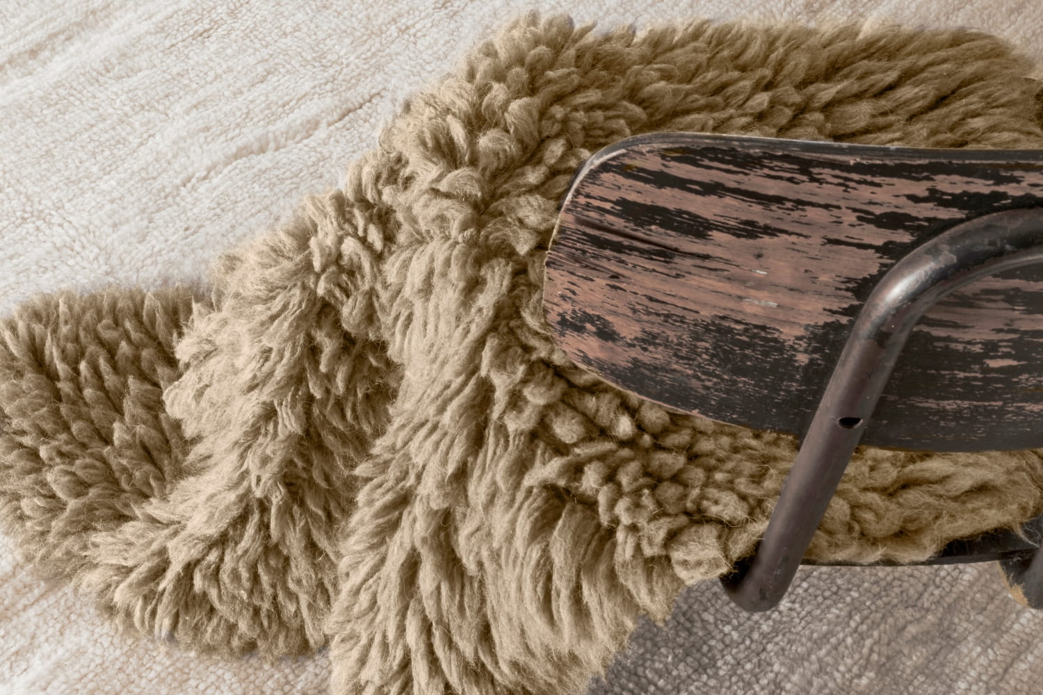 Dywan Lorena Canals WOOL RUG Woolly Beige to kwintesencja naturalnej przytulności i elegancji, inspirowana klasycznym kształtem owczej skóry. Jego zaokrąglona forma i wyjątkowo puszysta struktura sprawiają, że wnosi do wnętrza ciepło i komfort, stając się nie tylko praktycznym elementem wyposażenia, ale także dekoracyjnym akcentem, który dodaje przestrzeni naturalnego uroku.