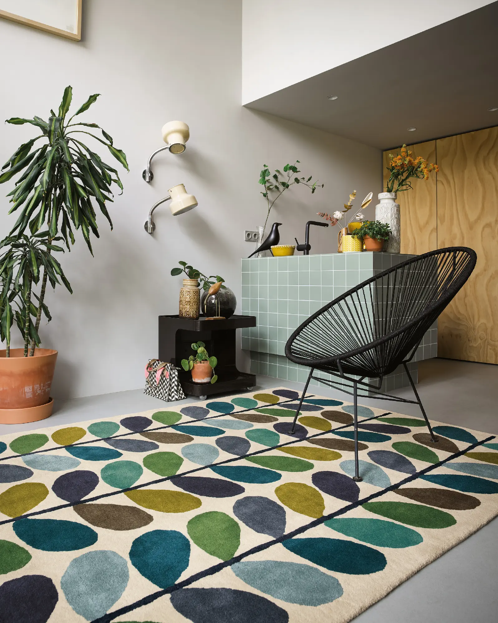 Dywan Orla Kiely MULTI STEM 059507 Kingfisher to prawdziwa kolorowa uczta dla oczu, z charakterystycznym wzorem zaprojektowanym przez irlandzką projektantkę Orlę Kiely. Jego wyjątkowy wzór inspirowany łodygami i kwiatami emanuje elegancją oraz morskim klimatem, idealnie nadając się do ożywienia każdego wnętrza. Dzięki połączeniu intensywnych kolorów i dynamicznego wzoru, ten dywan stanie się doskonałym elementem dekoracyjnym, który doda charakteru i świeżości każdemu pomieszczeniu.
