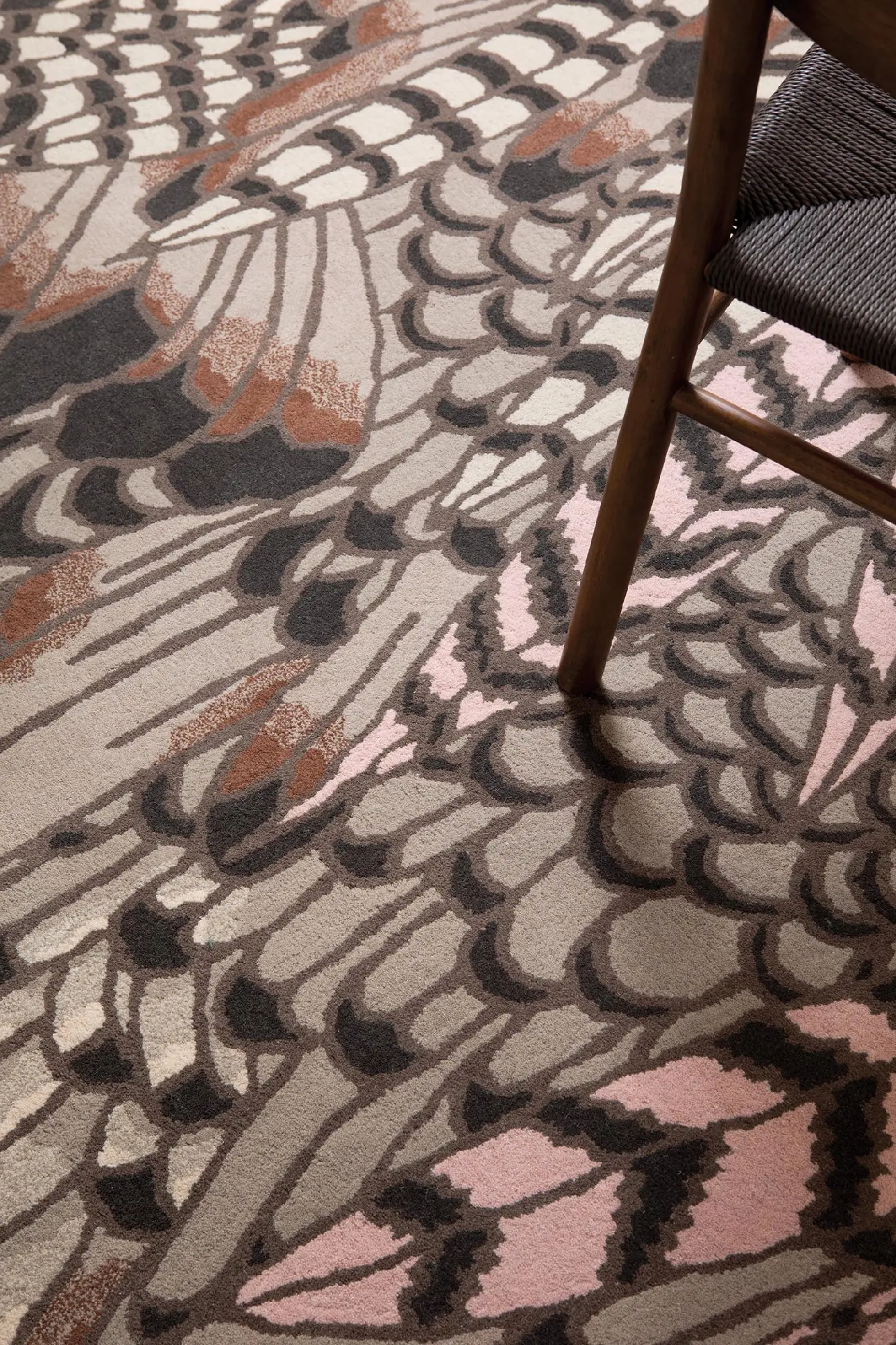 Inspirujący wzór dywanu, przedstawiający delikatne pióra, jest wyrazem miłości do natury i jej niezwykłej estetyki. Ta subtelna dekoracja nadaje dywanowi lekkości i elegancji, czyniąc go idealnym dodatkiem do wnętrz ceniących minimalizm i naturalne piękno.