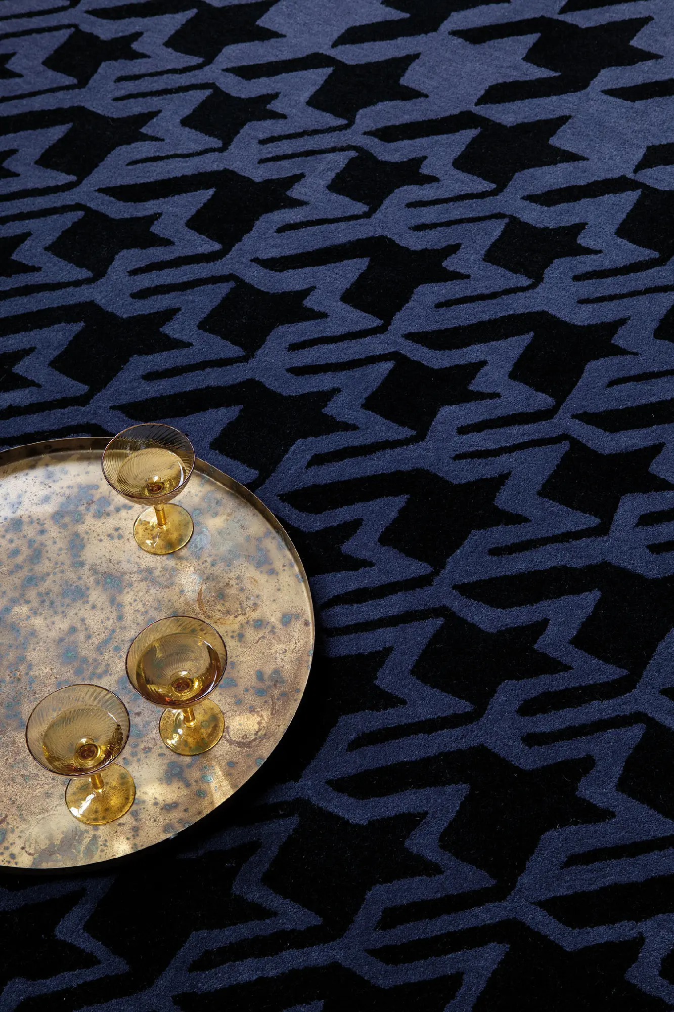 Dywan HOUNDSTOOTH Blue 162808 urzeka swoją intensywną, granatową barwą, która wprowadza do wnętrz atmosferę świeżości i dynamiki. Ta wyrazista kolorystyka jest doskonałą bazą dla aranżacji pełnych charakteru i nowoczesności, dodając pomieszczeniom energii i stylu.