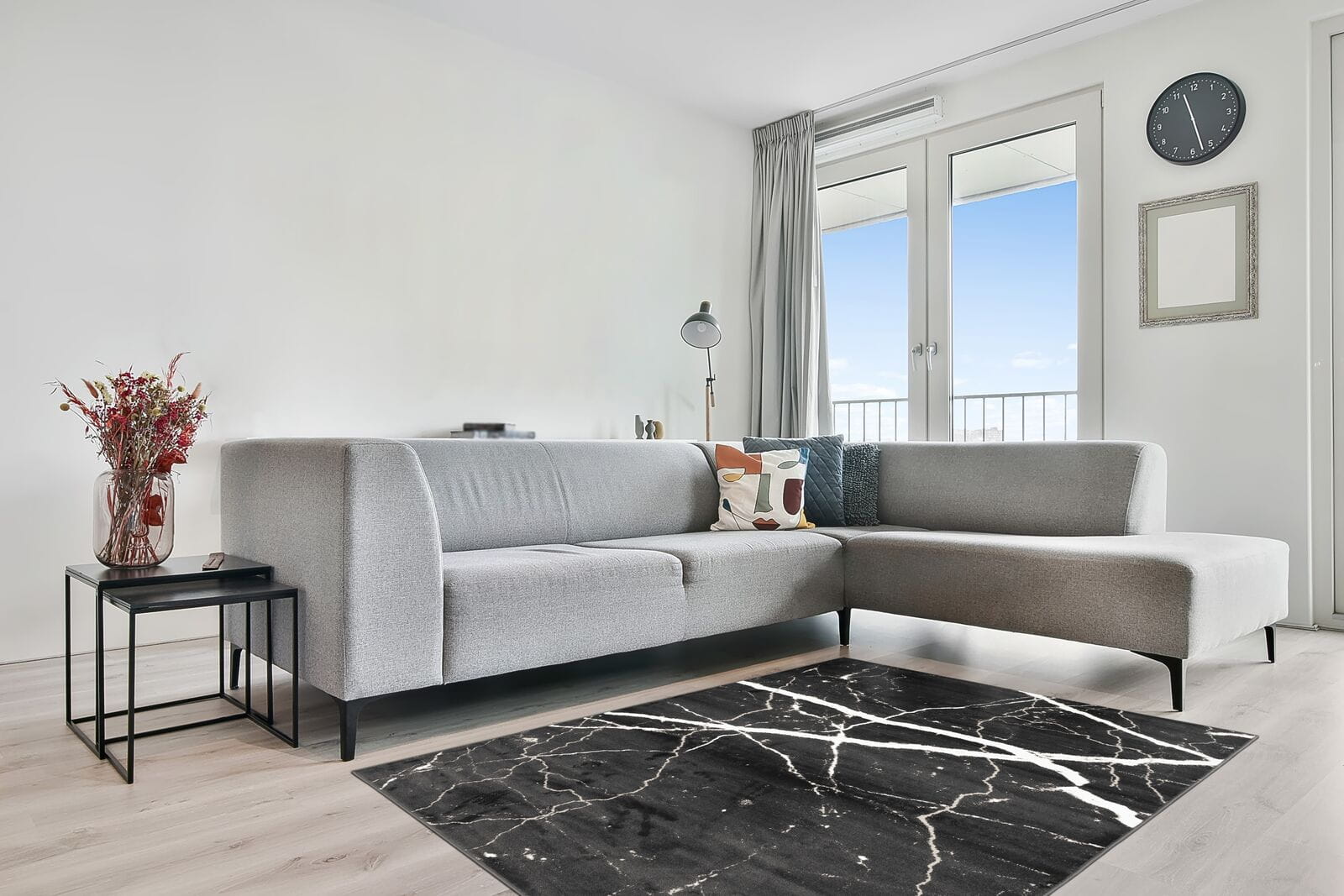 Wzór marmurowy dywanu BLACKY P Antracyt jest inspirowany naturalnym pięknem kamienia, wprowadzając do wnętrza element luksusu i wyrafinowania. Subtelne przejścia kolorystyczne i nieregularne linie charakterystyczne dla marmuru nadają każdemu pomieszczeniu głębi i charakteru, jednocześnie zachowując uniwersalność, która pozwala na dopasowanie dywanu do różnorodnych aranżacji wnętrzarskich.