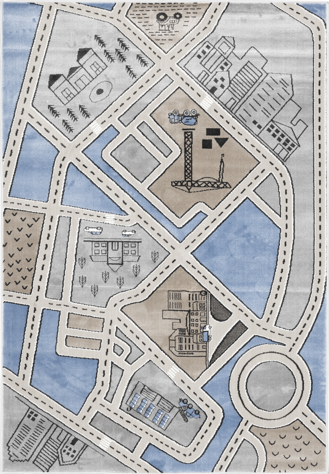 Subtelne kolory i uroczy, dziecięcy wzór z motywem miasta sprawiają, że dywan ten jest nie tylko elementem dekoracyjnym, ale również staje się częścią przytulnej przestrzeni do zabawy i wypoczynku dla dziecka. Szara paleta barw dywanu sprawia, że łatwo wpasowuje się on w różnorodne aranżacje wnętrz dziecięcych, dodając im ciepła i przytulności.