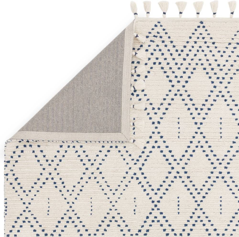 Dywan NEPAL Cream / Blue Diamond jest nie tylko piękny, ale również funkcjonalny dzięki zastosowaniu naturalnej wełny, która jest znana ze swoich doskonałych właściwości termoizolacyjnych, odporności na zabrudzenia oraz łatwości w konserwacji. Ręcznie tkany gwarantuje wyjątkową trwałość i jakość każdego egzemplarza, podkreślając unikalny charakter i rzemieślnicze wykonanie.