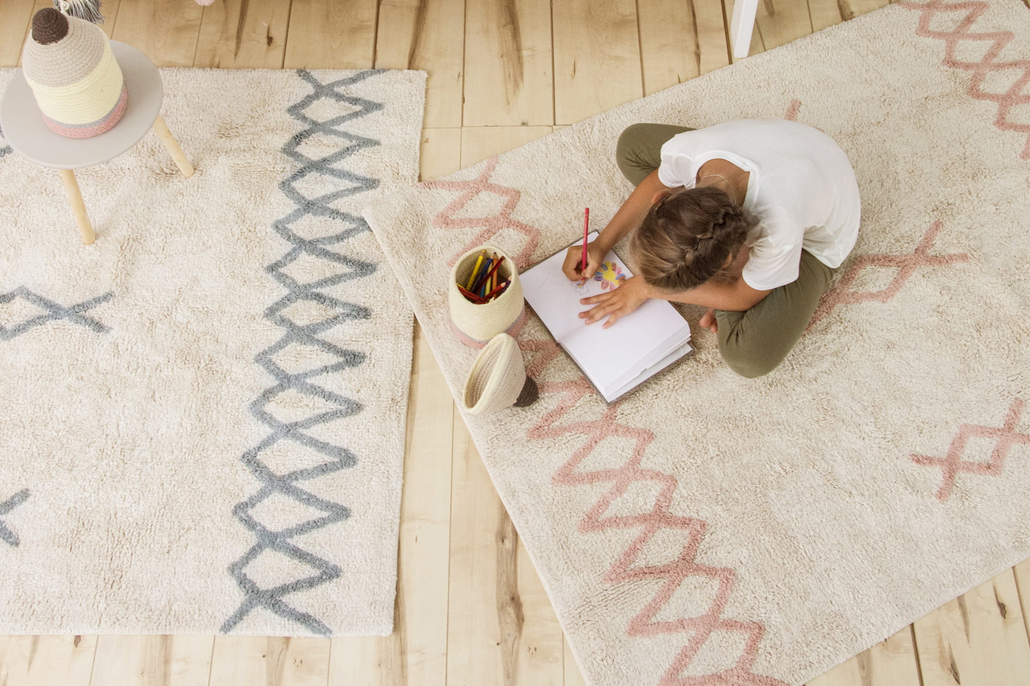 Wybierając dywan Lorena Canals ATLAS Vintage Nude, decydujesz się na połączenie tradycji i nowoczesności, wprowadzając do wnętrza element, który będzie służył nie tylko jako dekoracja, ale również jako miejsce zabaw oraz odpoczynku dla najmłodszych.