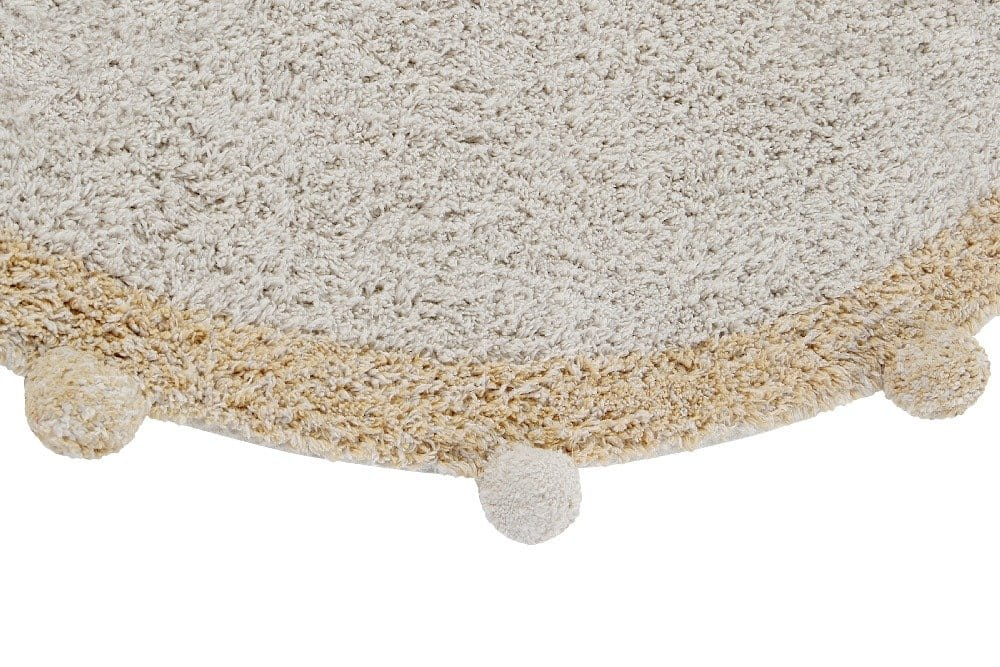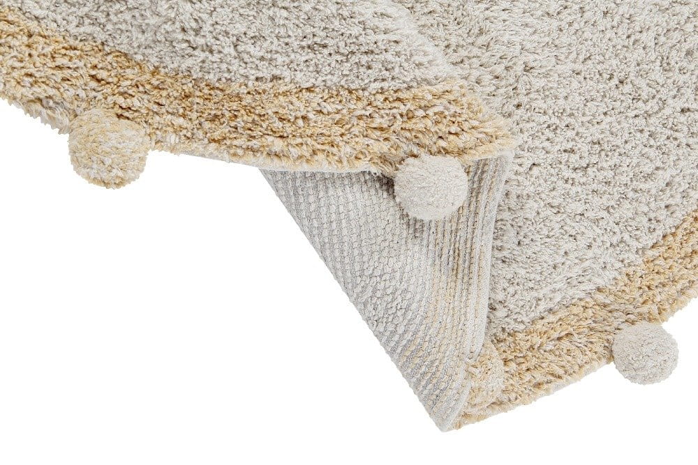 Dywan Lorena Canals BUBBLY Honey to uroczy dodatek do każdego pokoju dziecięcego, który łączy w sobie delikatność i praktyczność. Jego charakterystycznym elementem są miękkie, bawełniane pompony, które nie tylko dodają uroku, ale także tekstury, zachęcając do dotyku i zabawy. Wykonane w 100% z bawełny, te pompony są nie tylko przyjemne w dotyku, ale także łatwe do utrzymania w czystości, ponieważ cały dywan można prać w pralce.