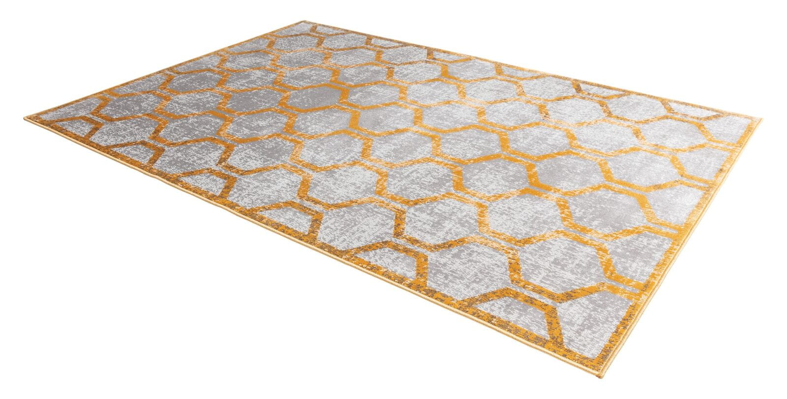 Dywan TEHYA Złoty jest nie tylko wyjątkowo estetycznym, ale również praktycznym dodatkiem do domu. Dzięki swojej trwałości, odporności na zagniecenia i łatwości w utrzymaniu czystości, idealnie nadaje się do intensywnie użytkowanych przestrzeni, takich jak salony, jadalnie czy pokoje dziecięce.