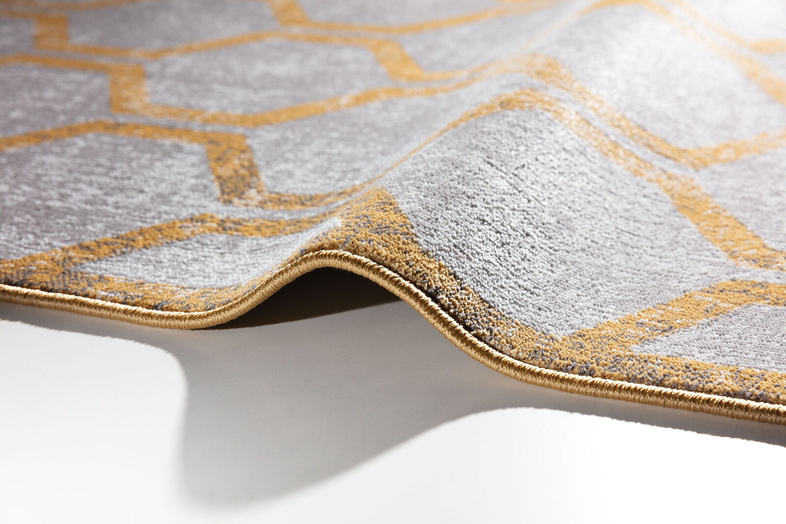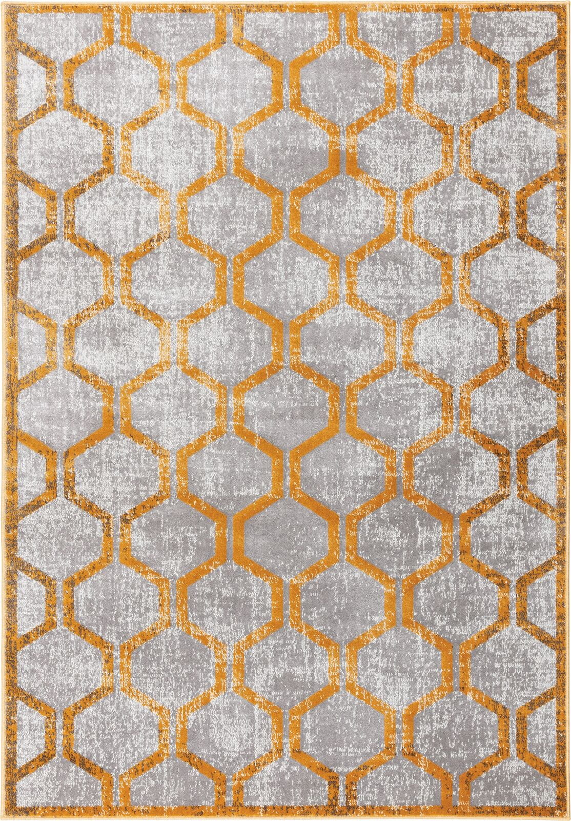 Geometryczny wzór dywanu, składający się z precyzyjnie zaprojektowanych kształtów i linii, wprowadza do każdego pomieszczenia porządek i harmonię. Kolorowy, choć utrzymany w stonowanych barwach, wzór dodaje wnętrzu nowoczesnego charakteru, jednocześnie nie przytłaczając przestrzeni. Stonowana paleta kolorów, opierająca się głównie na odcieniach złota, łatwo współgra z różnymi schematami kolorystycznymi i stylistykami wnętrz, od minimalistycznych po bardziej tradycyjne.