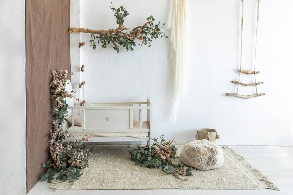 Szczególną uwagę przyciąga fragment poezji w postaci ręcznie haftowanego napisu „The Cotton Song of the Woods”, dodający dywanowi głębi i osobistego charakteru. To nie tylko dywan, ale również dzieło sztuki, które opowiada historię i inspiruje do refleksji nad pięknem otaczającej nas natury.